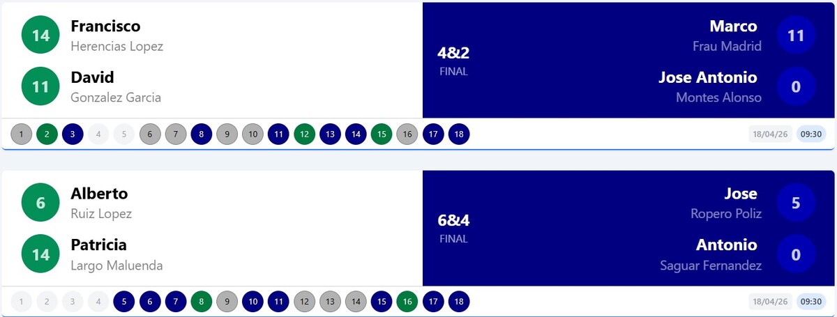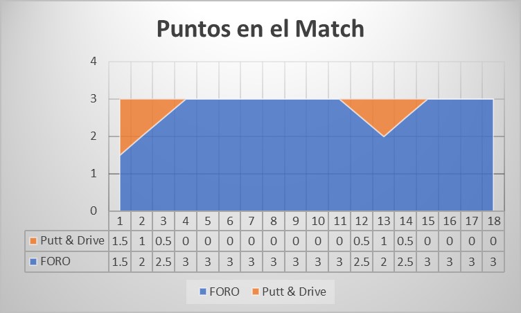 A mitad de partida, Antonio se vino arriba y se marcó una racha espectacular: dos pares y un birdie en tres hoyos seguidos. Eso les dio un subidón tremendo y los puso cuatro arriba rápido. ¡Una locura!
