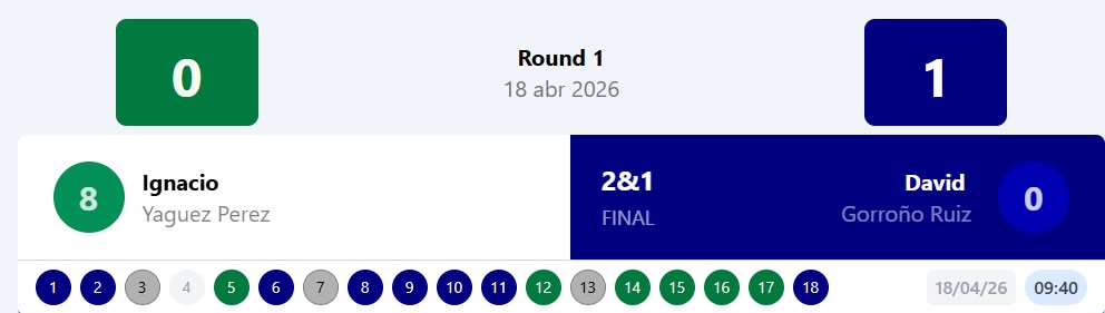 Nota: Y esto lo digo yo, Montes jugando al par del campo, si no he visto mal la tarjeta, y Gorroño 77 golpes a falta de jugar 1 hoyo.